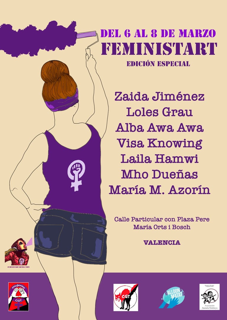 Feminist Art es un proyecto que surge de la unión de un colectivo de mujeres artistas que realiza encuentros por el territorio español, reivindicando la situación de la mujer y su invisibilización (especialmente en el mundo del arte), a través de murales, donde cada una de las participantes expresa libremente sus inquietudes.